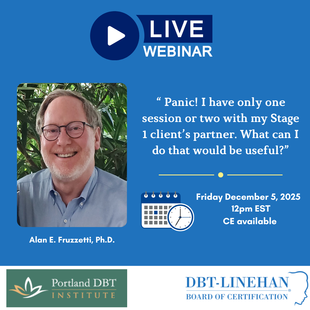 This event is being co-sponsored by Portland DBT Institute who will issue the CEs from NBCC. Participants will earn 1.5 CEs for attending this presentation. Note: You must attend the webinar live to receive the CE credits.