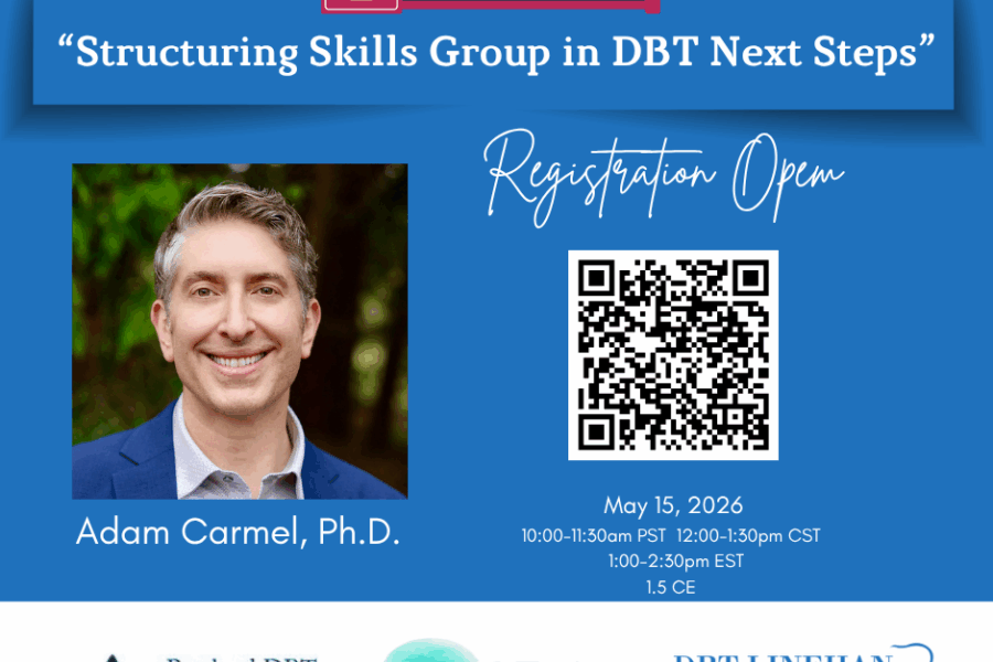 May 15, 2026 @ 10-11:30am PST; 12-1:30pm CST; 1-2:30pm EST Register HERE Webinar Details: In the “DBT Next Steps” manual, Dr. Katherine Comtois, Dr. Adam Carmel, and Dr. Marsha Linehan offer a way to stretch across the divide for clients who successfully completed standard DBT but haven’t yet achieved their worth-living aspirations for work, employment,…