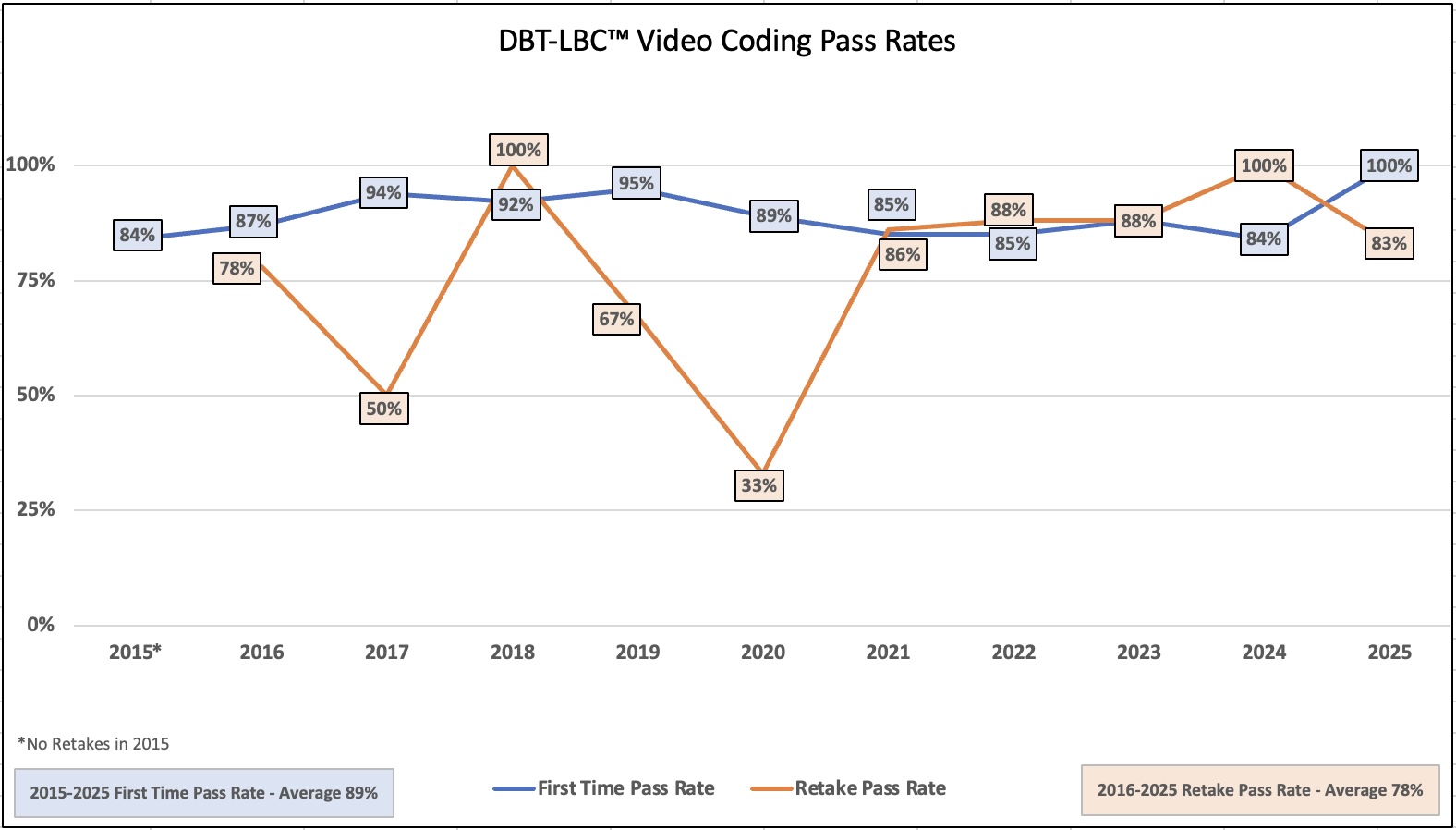In the event that your video submission is not coded to the adherence standard, you may submit an additional three therapy sessions (with all accompanying documentation required) at no additional fees within 6 months of notification. If you wait longer than 6 months, you will be required to pay that portion of the fees again! So keep track of your submission deadlines.